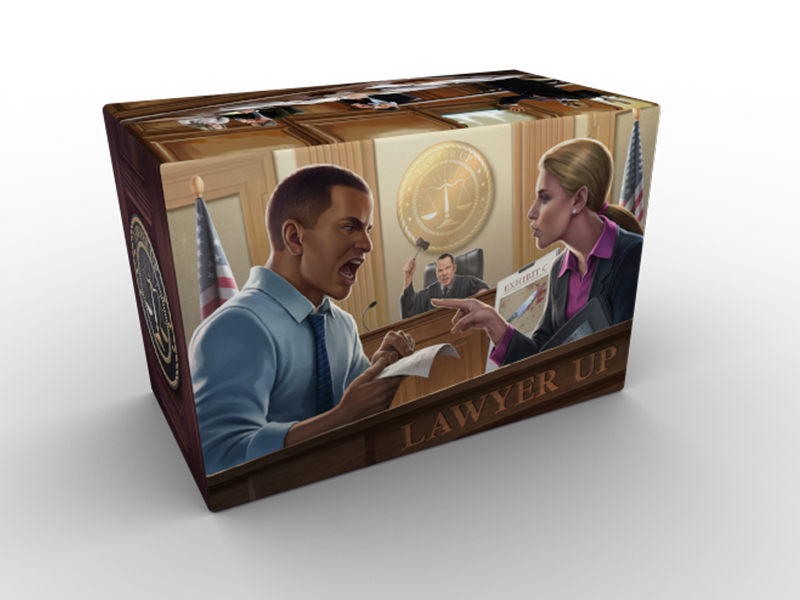 Lawyer Up is an asymmetrical two-player courtroom drama card game where one player is the noble prosecution and the other the steadfast defense. Each game begins with Discovery, where players draft vital evidence to support their case and bury evidence that might help their opponent.